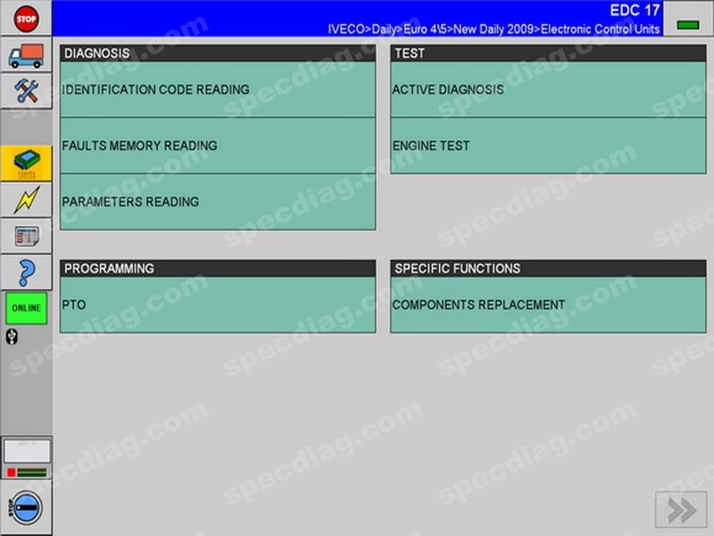 E.A.SY (Electronic Advanced System) - allows simple diagnosis of the various electronic control units on the vehicle, using a communications module (ECI). E.A.SY. software interface is designed to facilitate access to tools, view functions and make diagnostic procedures clear and adaptable to various needs. The software for the E.A.SY platform provides a single, intuitive interface, through which it is possible to consult a guide to repairs organised by symptom.